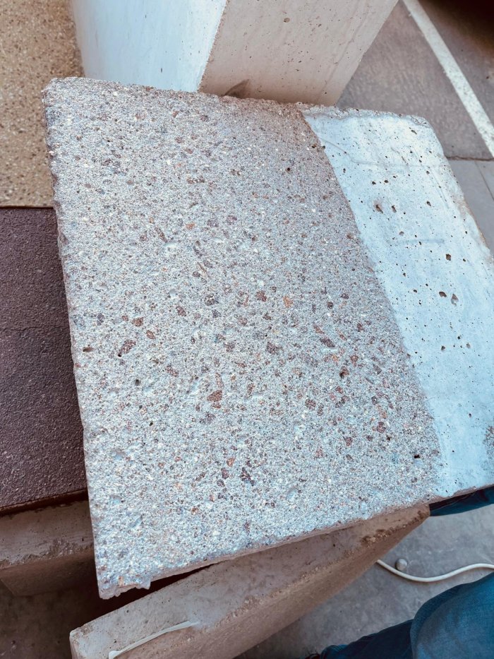 Das Stocken ist eine mechanische Bearbeitungstechnik, bei der mit einem speziellen Hammer oder Maschine kleine Vertiefungen in die Oberfläche geschlagen werden. Dadurch entsteht eine markante, rutschfeste Textur. Auch hier bestimmen wir Tiefe und Intesität der Bearbeitung individuell - von dezent bis stark strukturiert