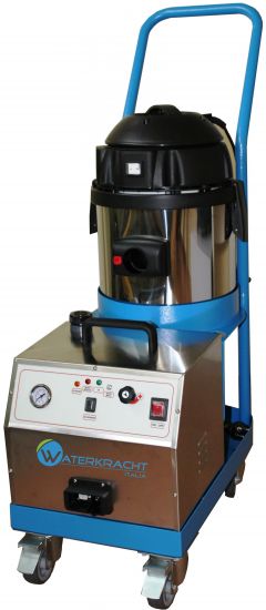 Ein kompakter Dampfreiniger in Inox mit Sauger in 2 verschiedenen Versionen.
